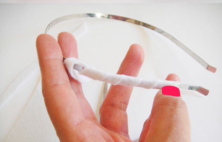 - גזרו רצועות ברוחב חצי סנטימטר ולפפו אותן סביב הקשת. מרחו דבק על הקשת על מנת לקבע את הכיסוי. ( השלב הנ"ל הוא לא חובה, אפשר גם להסתפק בקשת רגילה ולדלג לשלב הבא)